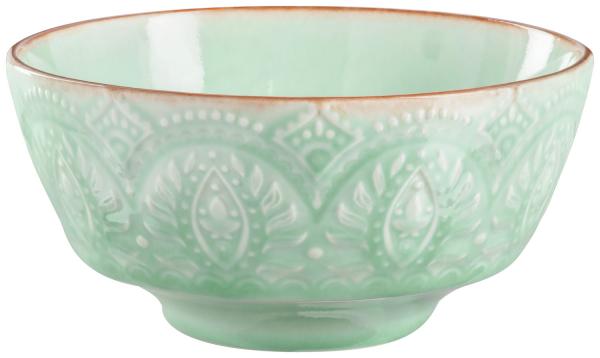 Colored porcelain bowl in ceramic look. Each plate has a unique pattern. Dishwasher safe and microwaveable.