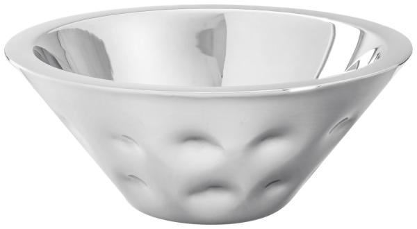 Bowl for fruit and bread made of chrome-nickel stainless steel 14/4 in a large hammered look. The bowl is double-walled and therefore has a good cooling effect. Suitable for dishwasher. Stackable.