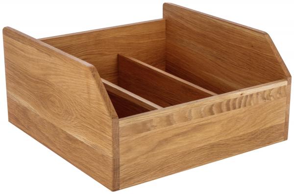 Bread chute made of oak wood. The three small compartments measure 13.2x42 cm. The labeling boards are available separately.
