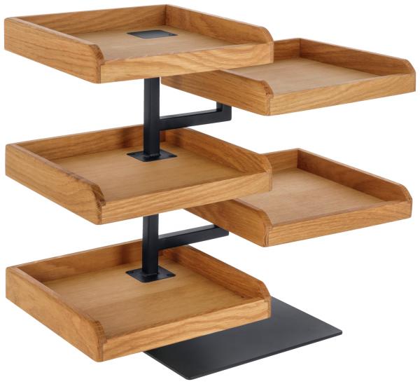Modern display made of oak. The wooden boards are 24x24cm in size. The labeling boards are available separately. Supplied disassembled - easy assembly.