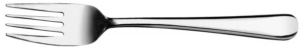 Chrome stainless steel 18/0. Plain cake fork. Material thickness 2.2 mm (measured at the strongest point of the table fork). Suitable for dishwasher.