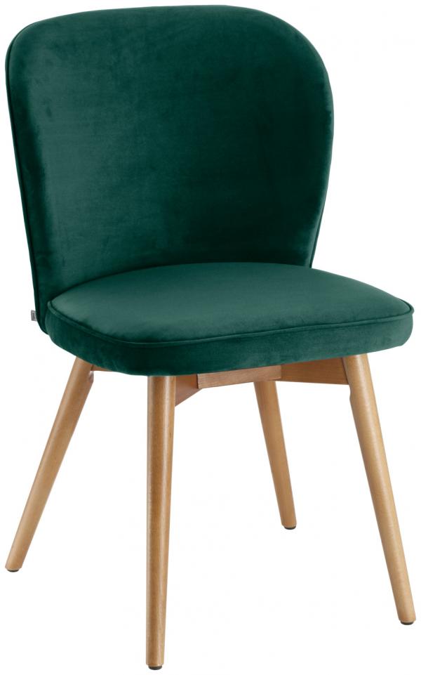 Elegant chair Lian with filigree legs made of solid beech wood stained in oak look. You can choose this comfortable chair from a pleasant velvet cover (100% polyester) or from a fabric cover (100% polyester). There are plastic glides on the underside. Only suitable for indoor use. Easy to clean. Delivered assembled. * Seat height: 49.0 cm * For indoor use only * Fire retardant cover Material legs: Solid stained beech. Material cover: 100% polyester.