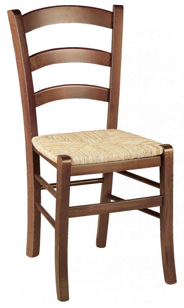 Solid, classic chair made of solid beech wood, colored stained or lacquered. Suitable for indoors only. With natural juncus wickerwork seat. Seat: 38x38 cm, seat height 48 cm.