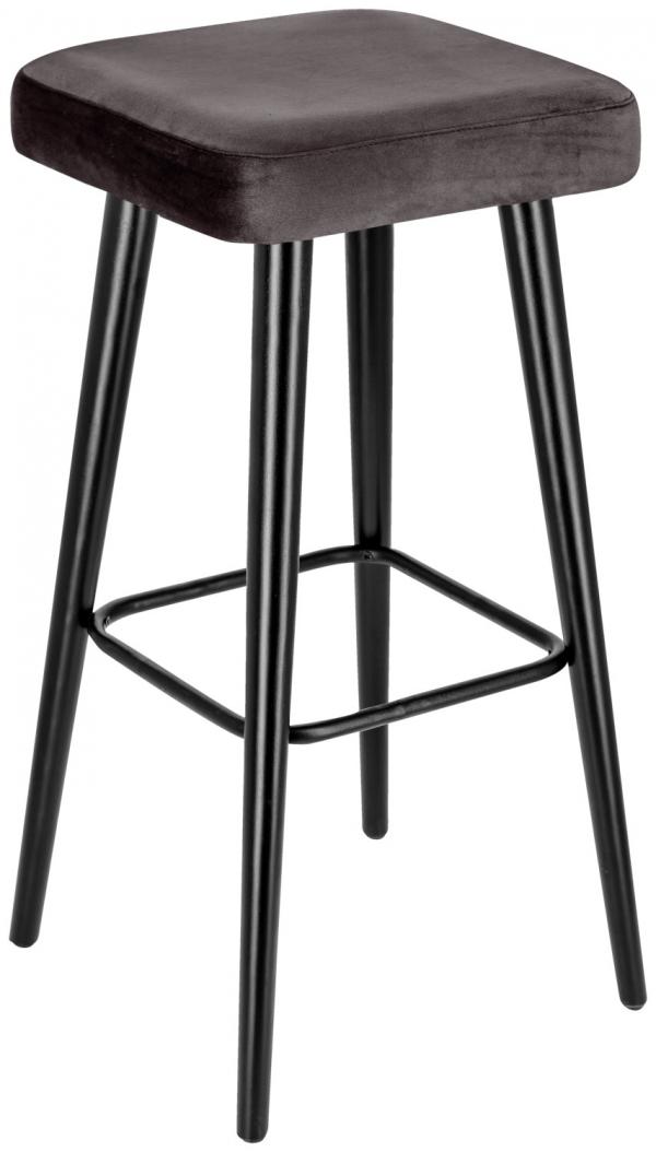 Elegant barstool consisting of a velvet cover (100% polyester) and black, painted beech legs. Seat 38x38 cm. Fire-resistant cover. Steel kick plate. Includes plastic gliders. Only suitable for indoor use. Delivered assembled. Order the matching chair at the same time.