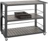 Such a clearing trolley like Aventuro convinces with its design and function! With its high-quality frame made of 1.2 mm thick, powder-coated aluminum and robust plastic shelves, it is extremely stable, UV and weather-resistant as well as extremely easy to clean. Sturdy crossbars (included in the scope of delivery) can be used in its second and third floor to safely transport bottles, glasses, crockery, cruet stands and much more. In addition, various GN containers made of different materials and a cutlery box can be transported. This makes the clearing trolley highly flexible and is the perfect support for everyday life. Frames and shelves can be individually combined with many of our existing chairs and tables. Aventuro is therefore the best choice for your modern indoor and outdoor ambience. Matt powder coated aluminum, plastic in wood optics, cutlery basket in polypropylene. Outdoor. Frame is delivered disassembled, incl. mounting material!