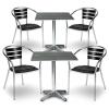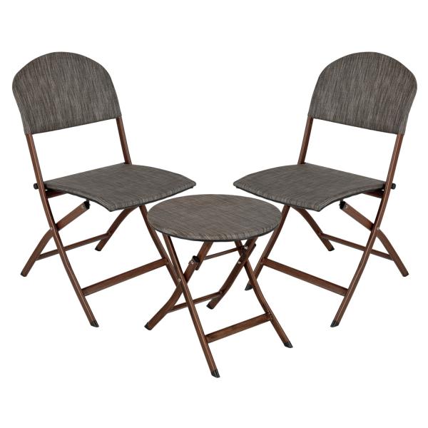 5-piece bistro furniture set Romalia, consisting of: 4x folding chairs and 1x folding table made of powder-coated steel and seat with plastic fabric. With plastic glides on the chair and table legs. Maximum table load 70 kg, chair 130 kg. Foldable, weatherproof and UV-resistant. Suitable for outdoor use. Supplied assembled.