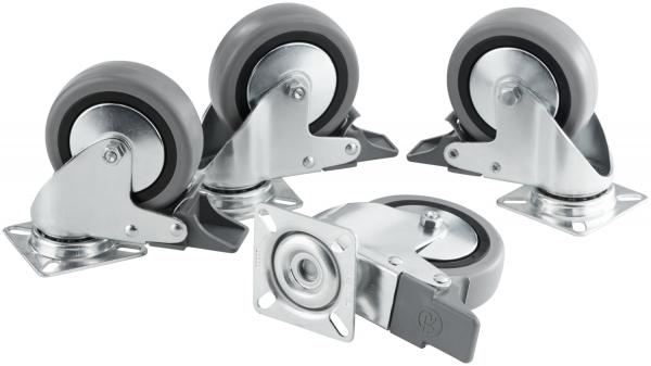 Serving trolley with its two large (2/1 GN) and two small (1/1 GN) insert compartments. Wheels with soft and floor-friendly running surface (please order separately). With the aid of an adapter frame, the serving trolley can be equipped with all buffet inserts based on basis tray, e.g. wooden boards, carafe holders or bottle holders, can be combined. Material: solid oak wood. Material handles: stainless steel.