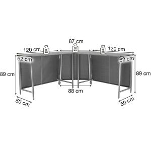 Whether as a perfect combination partner for the Baruba Bar or as a stand-alone solution - our folding outdoor tables impress with their functionality, design and maximum flexibility. Ideal for events, catering or mobile outdoor use. Made from a high-quality material mix of powder-coated aluminum and durable textile covering, the tables offer a robust yet lightweight construction. The scratch-resistant HPL decor table top provides an elegant, durable work surface - even with intensive use. It is ready for use in just three simple steps: open the side wings, insert the HPL worktop and you`re done. Thanks to the clever folding technology, the tables can be set up quickly and stowed away again just as easily in the transport bag supplied - perfect for mobile use. The Baruba tables can be extended as required, the two parts are quickly and easily fixed together with a plug-in connection. The system can also be extended with an outer corner. Thanks to the identical design, the folding outdoor tables and the Baruba Bar can be seamlessly combined. The result: a professional appearance with minimal effort - anytime and anywhere. * 2 different color versions available * Velcro straps for fixing the side wings * Integrated height-adjustable glides * Exact dimensions & loads according to sketch * Incl. transport bags for the frame and the insert panels * Delivered partially assembled * Suitable for outdoor use