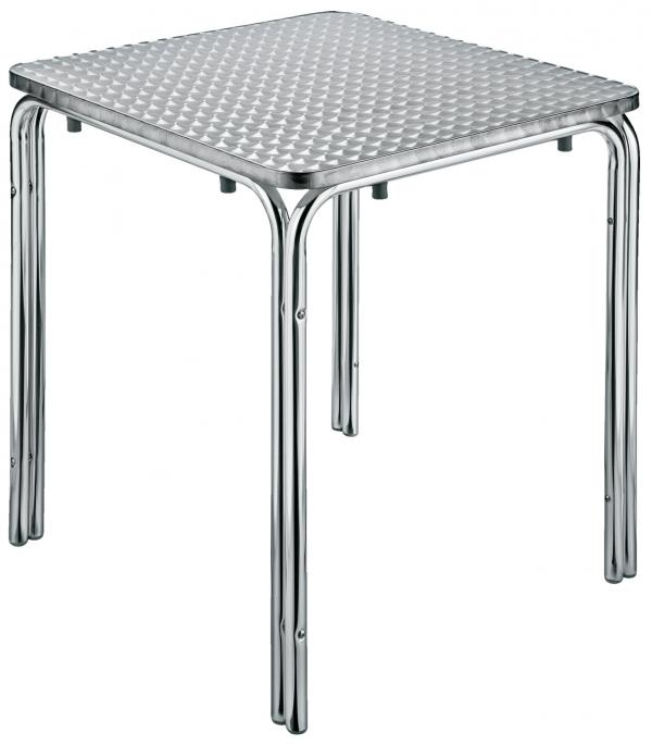Easy to clean, modern, stackable - the aluminum table Limona convinces with several advantageous properties and is a real all-rounder that can be used in many ways in the catering industry. Like the other aluminum furniture of the series, the square aluminum table scores with robust and uncomplicated properties. It can be used indoors as well as outdoors, because it is weather and UV resistant. Since these are stackable tables, they can be stored in a space-saving way when not in use. * Square aluminum table for outdoor and indoor areas * Four table legs, stackable! * Table top made of waterproof wood-based panel. Covered with high quality stainless steel sheet * Table frame made of anodized aluminum * Versatile usable * Bistro table weatherproof, UV-resistant * Can be easily combined with aluminum chairs and other furniture of Limona series Limona aluminum tables are perfect for basic equipment of your catering business with weather-resistant, durable outdoor furniture, which also shines with a modern look.
