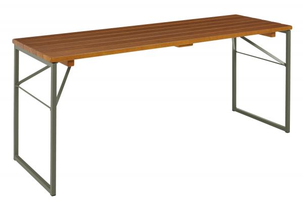 This high-quality, modern table-bench set fulfills all requirements and is a really nice alternative to the conventional beer tent sets. Easy to set up and dismantle due to the simple handling of the folding mechanism. The stable, galvanized and anthracite powder coated steel frame is as weather-resistant and water repellent as the table and bench plates are made of robust ash. You can choose between chestnut or walnut varnished. The chestnut brown also optimally matching our beer garden series BAVARIA. Weatherproof! High-quality! Space-saving! Stack protection!