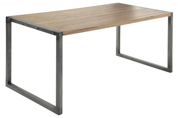 Table Torres brings the trendy industrial look to your dining rooms. The linear table is designed in vintage style. The rectangular steel frame is not powder-coated, but scores with natural steel look, which includes visible nuts and screws. The table top made of solid, high-quality oak wood is available in different shades and perfectly complements the look with a rustic component. This industrial chic table fits perfectly into hip gastro ambiences. * Indoor dining table * Frame made of steel in natural look * In the trendy industrial look * Table top made of solid oak (40 mm) in various stains * Natural knots are sealed with a special black resin. Thus, the table is easy to clean despite its vintage look * Different sizes available * Matches the bench Torres * Adjustable glides on the underside * Durable and easy to clean With the table Torres you put full on the vintage trend with trendy industrial look. The style mix of raw steel and rustic real wood is a special eye-catcher and fits perfectly with the matching bench Torres as well as the stool VITTO and the chair SCOLA. The wooden table in modern design is absolutely durable and robust. Material thickness: 3 cm! Metal struts prevent deformation of the plate! Only suitable for indoor use! 3-year availability guarantee! Material frame: steel, lacquered. Table top: FSC® certified solid oak wood.
