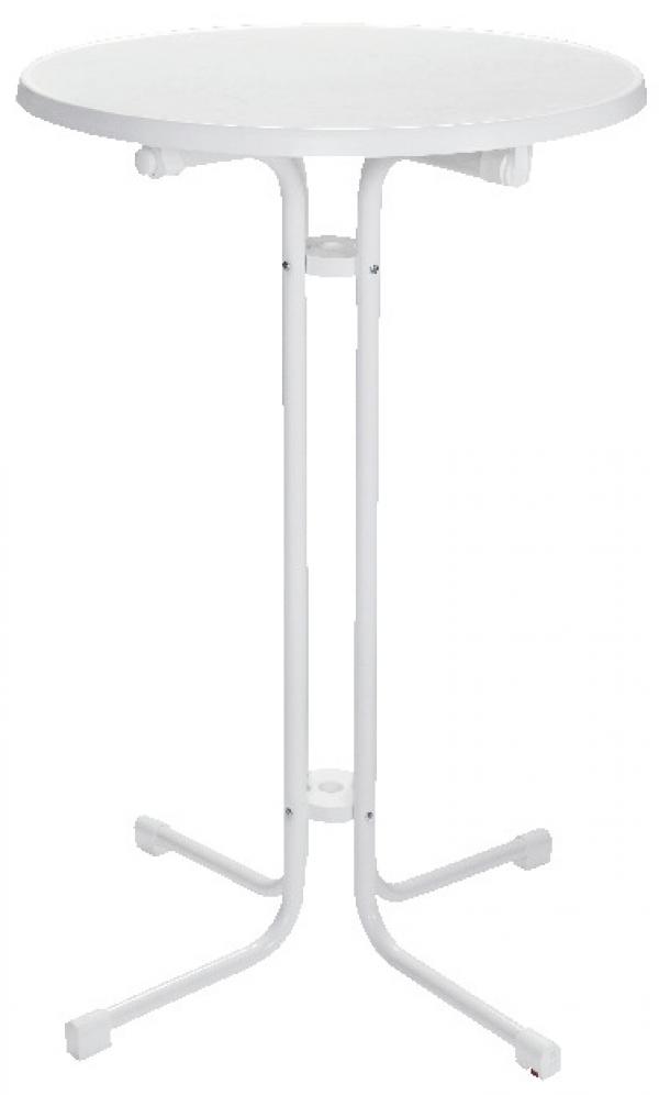The insensitive table top in white marbled with plastic edge protector and the stable steel pipe base are ideal for daily use. Practically collapsible it needs only 15 cm space. Foldable!