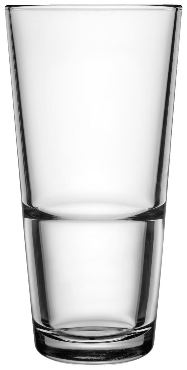 Stackable drinking glass series made of specially tempered glass. Dishwasher safe.