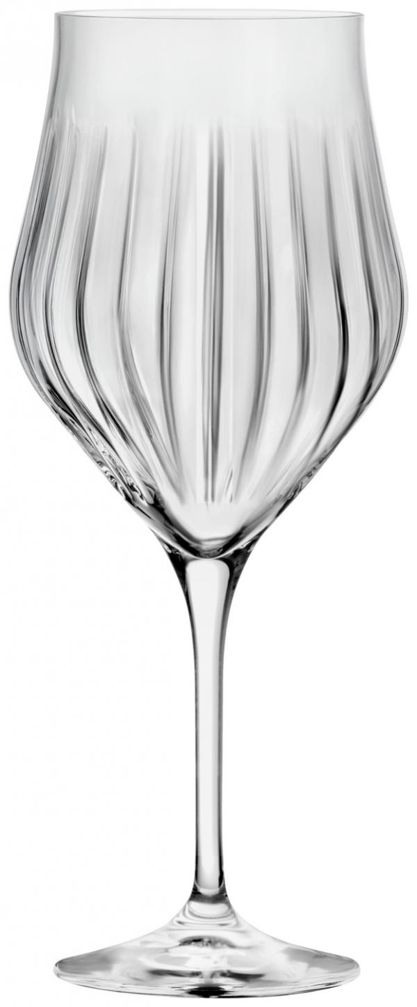 Red wine glass made of crystal glass with a cut look. Dishwasher safe.