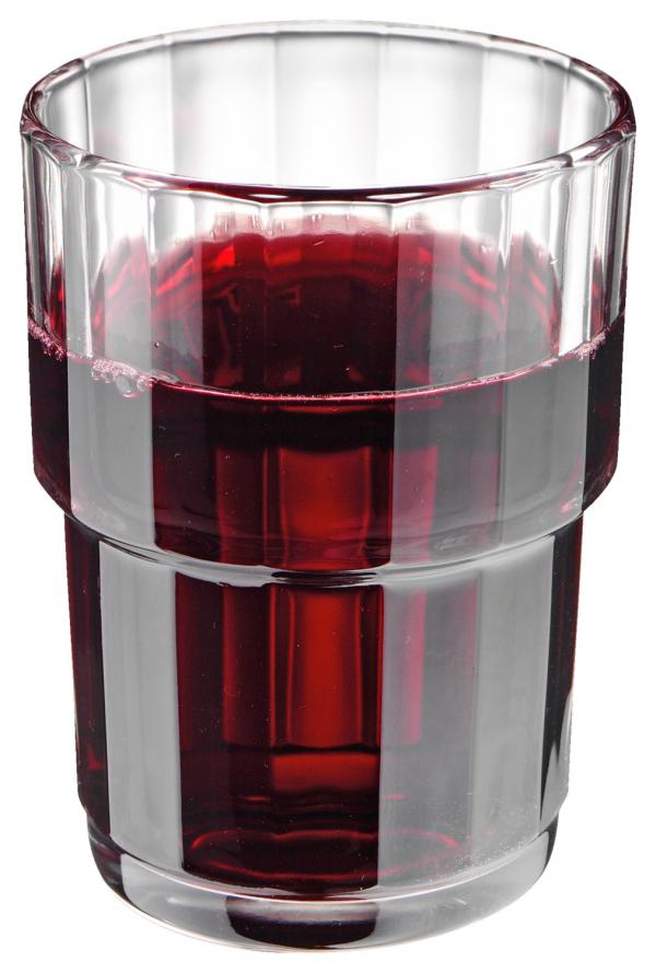 Drinking glass made of shock-resistant, tempered glass. Without filling line. Stackable and dishwasher safe.