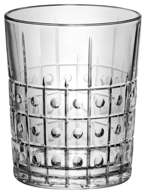 Universal glass with relief on the outside for ease of holding. Dishwasher safe.