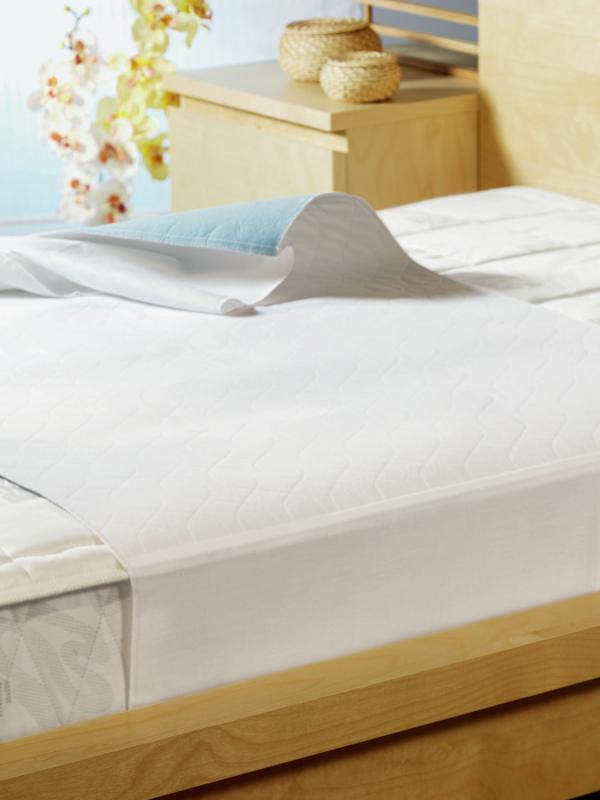 Top and underside: 100% polyester velour. Quilted absorbent fleece with polyurethane film on the inside. No slipping due to side wings. Impermeable to moisture. Weight 430 g/m².