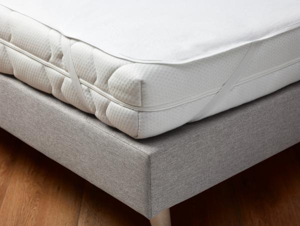 This product is made of brushed fleece in combination with polyurethane and offers many advantages: natural barrier against mites, reduces the risk of allergies, responds and absorbs moisture during sleep. Material: 65 % cotton, 35 % polyurethane. 230 g/sqm. 90°C washable.