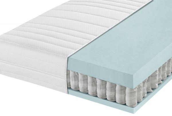 Excellent sleeping comfort at a great price! 7-zone barrel pocket spring core mattress Hardness level H3 (firm, recommended up to 140 kg body weight) 480 springs on 2 sqm Point-elastic sleeping comfort and optimal air exchange due to springs individually sewn into pockets Covered on both sides with 3 cm comfort foam Cover made of 100% polyester, quilted with climate fiber (washable at 60°C) 4-side zipper for removable and divisible cover with additional bottom cover protecting the core