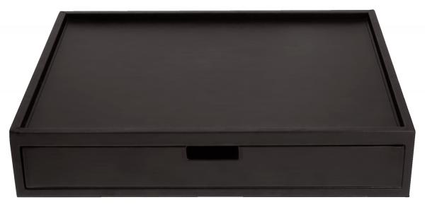 Space-saving hotel tray made of durable faux leather. With drawer for dust-free storage of ingredients. Easy to care for as it is water-repellent.
