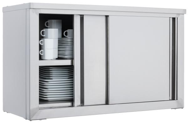Robust cabinet made of stainless steel, rustproof. Material thickness 0,8 mm. Interior with one intermediate shelf. With 2 sliding doors. Easy self-assembly, mounting material included.