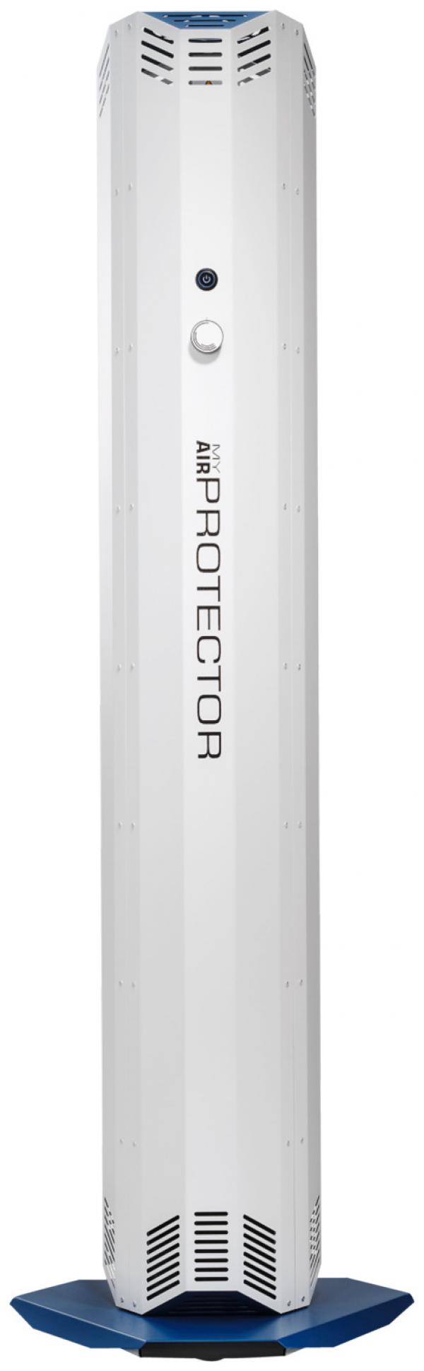 Reliable UVC air purifier stand (My Air Protector). Neutralizes or inactivates up to 99.99% of viruses and bacteria in the air by means of isolated UVC lamps, thus minimizing the risk of infection via droplets and aerosols in the interior. UVC light is a reliable, environmentally friendly and harmless method of disinfection. Built-in particle filter against pollen, spores, pollen, etc. to protect the UVC lamps. Cleans up to 565 m³ air per hour. Suitable for permanent use in closed rooms. Easy installation and operation. Simple self-assembly of the stand. Closed system guarantees an isolated UVC irradiation. Stable, safe and UVC-resistant metal housing with castors on the stand. Attractive and modern design. Dimensions include stand. Power cord 5m long. Lifetime of the UVC lamps 9.000 hours. Developed and produced in Germany. 2 years warranty.