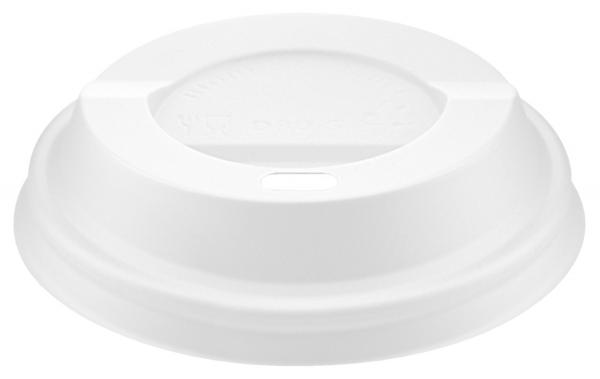 Leak proof disposable lid with drinking hole for drinking cup To Go. Made of CPLA, a organic based plastic, produced from renewable resources and biodegradable after use.