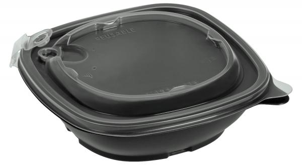 Reusable polypropylene bowl with lid, made of over 30% recycled material. Leakproof, stackable, BPA-free, recyclable, microwaveable and suitable for dishwasher for at least 50 cycles. Lid with valve.
