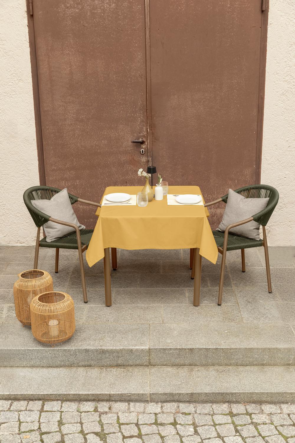 ##Lasolana outdoor fabrics by the metre - stain-resistant and lightfast The Lasolana outdoor metre fabric is the perfect choice for a wide range of outdoor designs. Made from 52% polyester and 48% cotton, it impresses with its durability and long service life. The special acrylic coating makes the fabric water-repellent, dirt-resistant and easy to clean. The simple, monochrome design in fresh, summery colours creates a lively look on any table. Thanks to its high lightfastness, the colours remain brilliant and true even after prolonged exposure to sunlight. Can be cut to size in a variety of ways, ideal for customised outdoor projects. * Blended fabric made from 52% polyester, 48% cotton * Weight approx. 190 g/m² * Acrylic surface coating for stain and water repellence * Stain-resistant and wipeable with a damp cloth * High light fastness, colourfast even under UV radiation * For indoor and protected outdoor use * Can be cut to desired size Care tip: Iron on the reverse after each wash to activate the coating and ensure durability - not suitable for mangles.