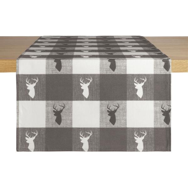 Checked table runner with alpine deer design made from soft cotton. Ultra-easy care and durable.