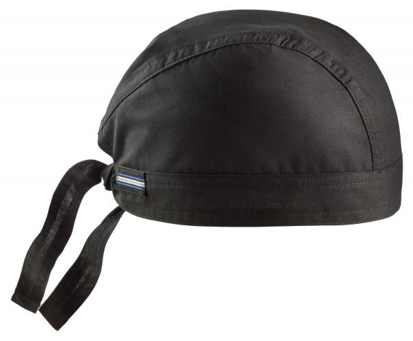 100% cotton; burgundy: 65% polyester / 35% cotton, 60 °Cwashable. Practical head cover for tying, with modern side stripes application. Available in white and black.