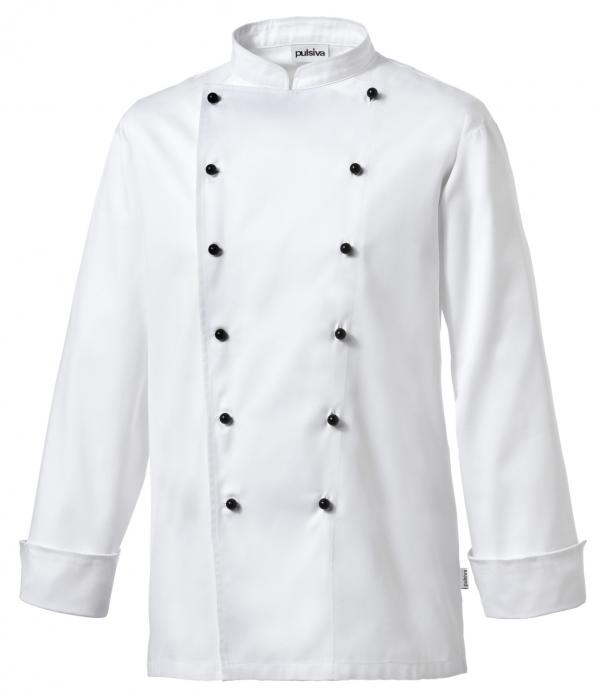 65% polyester, 35% cotton, 185 g/m², 95° wash, boil-proof. Classic white chef jacket made of durable, comfortable blend fabric. 6-button shape with matching ball buttons. For women and men. Suitable for tumble drying. Color white. Delivery in pack of 3 including ball buttons.