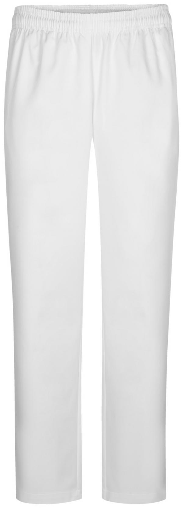 Plain elastic waistband trousers with built-in cord, 2 side slit pockets and 2 back patch pockets. 65% polyester, 35% cotton. 240 g/m². 60°C wash. Inside leg length: 80 cm for size 36.