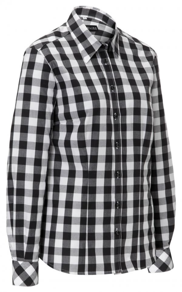 Checkered women`s blouse and men`s shirt with a sleeve cuff and slightly waisted cut. The blouse is available in three-quarter and long sleeve. The shirt is available in long sleeve. Material: 100% cotton. 40°C wash. Back length women: 64 cm at size 36. Back length men: 80 cm at size 39/40.