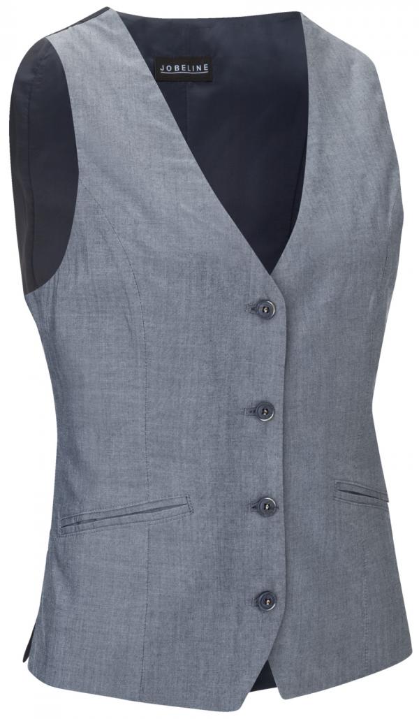 The Blake ladies vest is a true classic for service in the upscale catering industry. The modern vest for ladies gives your female staff a chic, elegant look and at the same time offers high wearing comfort. The front of the bistro vest is made of timeless blue cotton fabric and is equipped with two piped pockets. The comfortable taffeta back is made of polyester and is size-adjustable via a bar, ensuring a perfect fit. Since the vest is already pre-washed, it has the trendy used look. * Service vest for ladies * Classic taffeta back with bar for size adjustment in the back * Already pre-washed for a trendy used look * Slight change in color and washing are possible and provide over the wearing time for a unique look * Two functional piped pockets * With short slits on the sides * Available in many sizes * Back length in size S about 51 cm * Outer material 100% cotton, lining back 100% polyester * Gentle wash at 30°C; wash with similar colors Combine the women`s vest Blake with an elegant blouse and complete in this way the chic appearance of your team. This way, the service will also look visually perfect, just as your guests expect from you. Cleaning the vest is possible in the washing machine at 30°C on the delicate cycle.