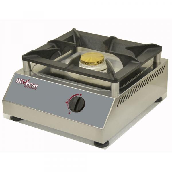 Napravljen od nerđajućeg čelika, blago duboko uvučen plan. 1 profesionalni gorionik (5 kW), mesingana krunica ´veoma visoka efikasnost´. Regulacija gasnim ventilom, sigurnosni uređaj termoelementom. Gornja rešetka od livenog gvožđa, uklonjiva, dimenzije 350k290 mm. Podesivi donji cilindri. Uređaj izgrađen u skladu sa standardima (CE) na snazi.