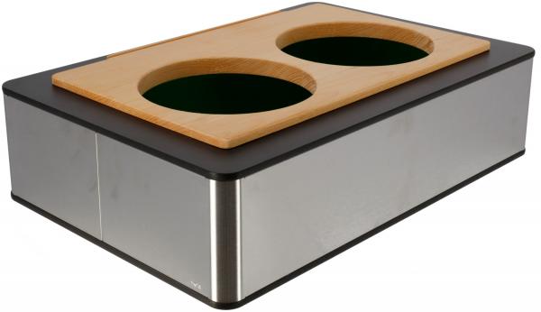 Set se sastoji od buffet kutije visoke 1/1 izrađene od visokokvalitetnog brušenog nehrđajućeg čelika 18/10 sa antecitom laminatnog poklopca, osnovnog kontejnera izrađenog od visokokvalitetne plastike sa otpornošću na toplotu do 70°C, odgovarajući hladni paket napravljen od polietilena i priloga za zdjelu za 23cm u čvrstoj bukvi.