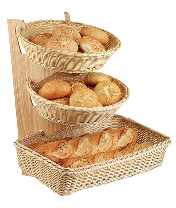 Funkcionalni sklopivi buffet štand, 3-fazan, napravljen od drveta (2 cm debela iverica). Sa dubinom noge od 30,5 cm, savitljiva promjenljiva širina. Pogodno za okrugle i pravougaone korpe. Dolazi bez korpi za hljeb.