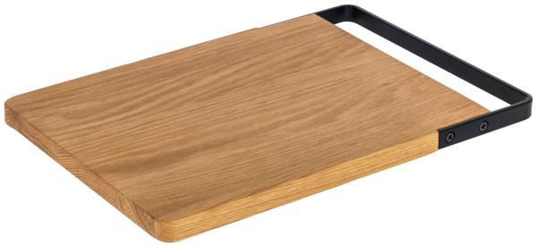 Daska za serviranje od uljanog hrasta sa modernom čeličnom ručkom u crnoj boji.