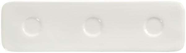 Porcelanski poslužavnik sa udubljenjem u blago kremastoj boji. Moderan dizajn sa jasnim linijama. Visoka otpornost. Briljantna glazura. Može se prati u mašini za sudove i koristiti u mikrotalasnoj pećnici. Naručite odgovarajuće činije istovremeno.