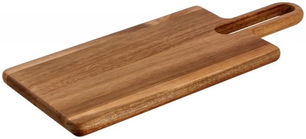 Moderna daska za hranu od nauljenog bagremovog drveta sa ručkom za nošenje i ekstra širokom pravougaonom rupom za vešanje. Nije pogodno za mašinu za pranje sudova. Bezbedno za hranu.