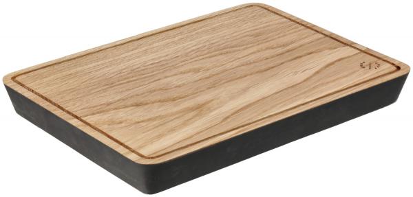Pravougaona daska za serviranje sa kosom i crno lakiranom ivicom od hrastovine uljane boje. Sa žlebom za sok za sakupljanje tečnosti. Četiri neklizajuće gumene noge obezbeđuju siguran hvat. Laka nega. Nije pogodno za mašinu za pranje sudova.