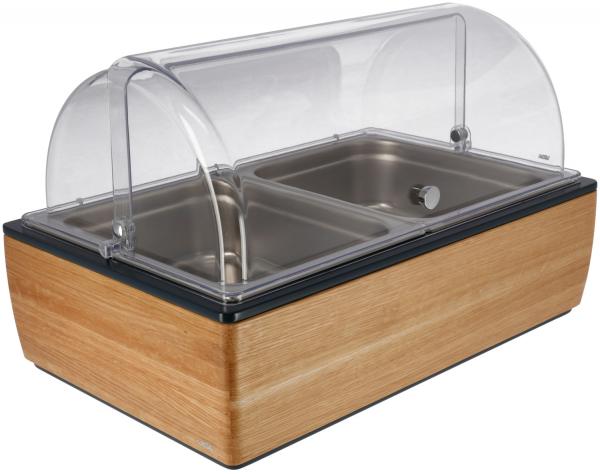 Set se sastoji od bife kutije visoke od čvrstog hrasta sa antracitnim MDF panelom, baznim kontejnerom napravljenim od visokog...kvalitetna plastika sa toplotnom otpornošću do 70°C, odgovarajući hladni paket izrađen od polietilena, 2x 10 cm duboki GN kontejner 1/2 izrađen od 18/10 hrom-nikla nehrđajućeg čelika.
