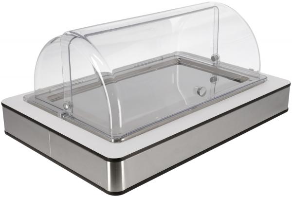 Set se sastoji od buffet kutije ravne izrađene od visokokvalitetnog, brušenog nehrđajućeg čelika 18/10 s bijelim laminatnim poklopcem, osnovnog spremnika izrađenog od visokokvalitetne plastike s toplotnom otpornošću do 70°C.