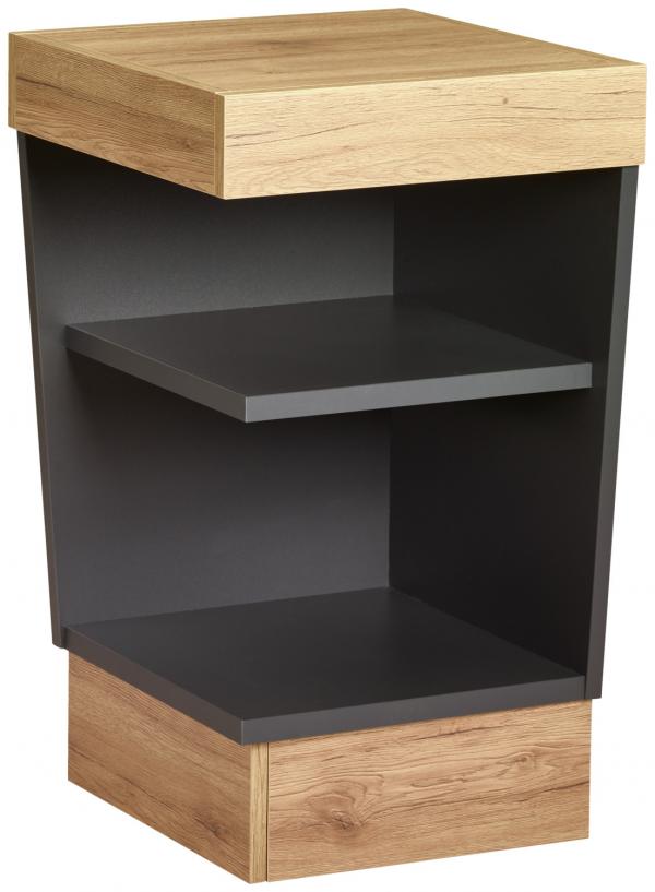 Buffet table made of derived timber products. The corner element serves perfectly as a finish of the wall elements or as an inner or outer corner, if you want to build your buffet around the corner. The bottom and fixed shelf in the body perfectly serve as storage space for extra plates, cups, etc. The tables are also equipped with 4 height-adjustable pedestal glides. Sturdy. Durable. Easy to clean.