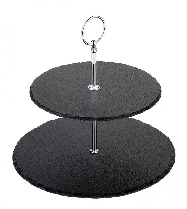 Ovaj dvoslojni displej napravljen od dva pladnja i stubova od nerđajućeg čelika. Nije pogodno za mašine za pranje sudova.