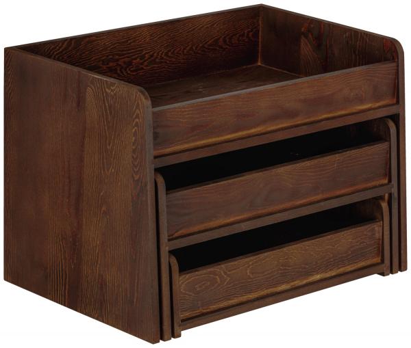 Materijal: bor, lakiranopterećenje do 5 kg po polici Dimenzije pojedinačnih polica: najmanja polica: 41,2x29,6x11 cm (WxDxH); srednja polica: 44.6x30.7x22 cm (WxDxH); Najveća polica: 48x31.9x33 cm (WxDXH)
