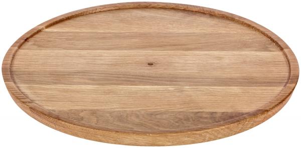 Okrugla drvena daska od nauljenog hrastovog drveta. Udubljenje daske sprečava da vaše kreacije padnu. Na tri udubljenja na dnu daske, može se pričvrstiti ili set za noge ili priložene klizače. Sa odgovarajućim čeličnim komadima, možete fleksibilno sastaviti svoj ekran od 1 do 3 nivoa, ovisno o tome kako ga trenutno koristite. Jednostavna njega. Nije pogodno za mašinu za pranje sudova.