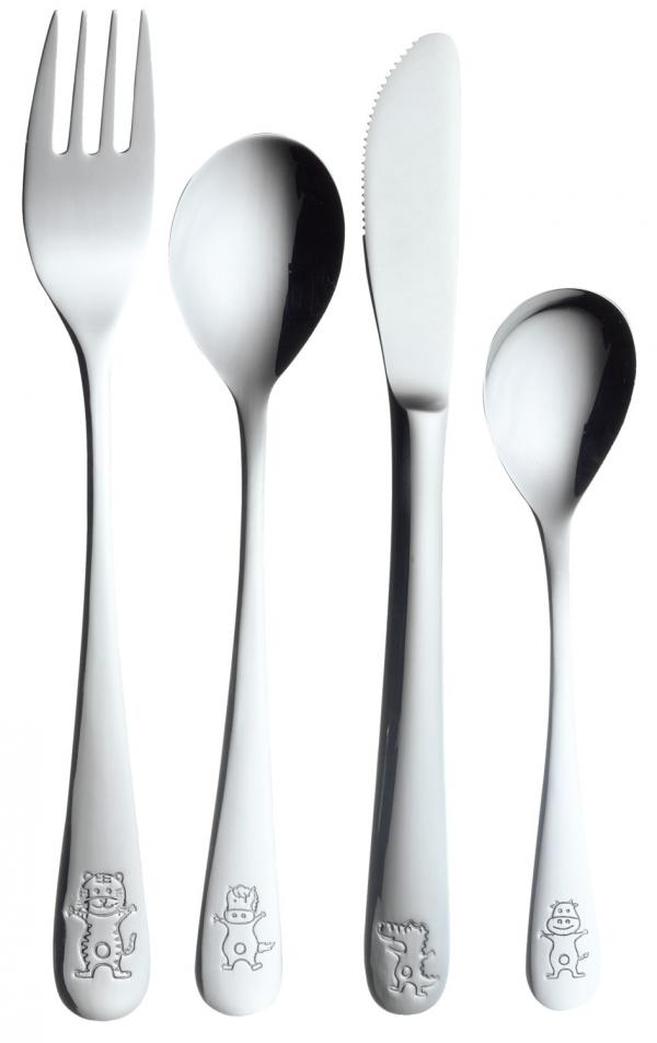 18/0 hromirani nehrđajući čelik. Set se sastoji od noža, viljuške, kašike i kašike za desert. Mašina za pranje sudova je bezbedna.