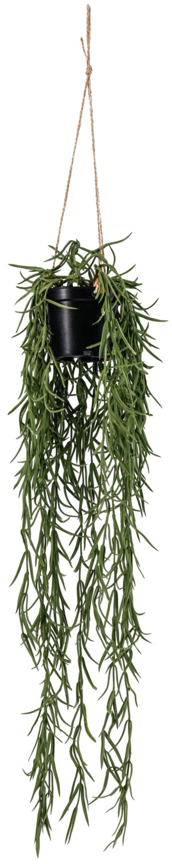 Vještačka viseća biljka napravljena od plastike u loncu sa praktičnom suspenzijom. Održavanje: Vlažnom krpom.